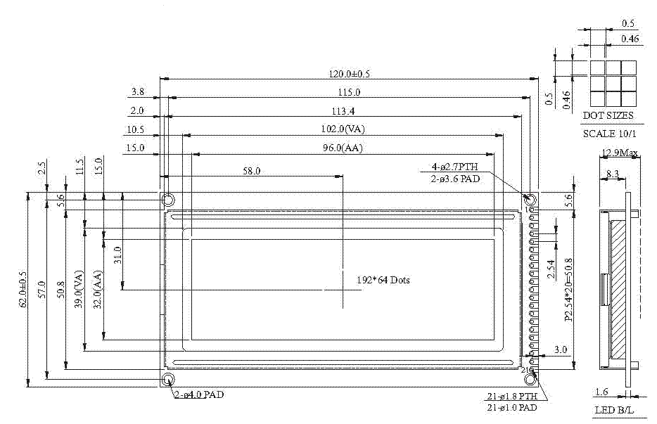 Wyświetlacz graficzny 192x64 z podświetlaniem LED (AMBER).